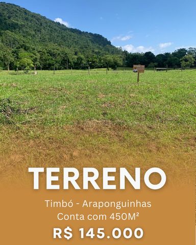 Terreno a Venda no Bairro Araponguinhas em Timbó 450m² de Pura Oportunidade! Você está procurando um lugar para construir a casa da sua vida em um bairro tranquilo? Ou investir na construção de duas casas para revenda? Então não perca essa oportunidade incrível! Detalhes do Terreno: ✅ 450 metros quadrados de área total ✅ Localizado em um bairro tranquilo Perfeito pra você construir a casa dos seus sonho ou até mesmo investir em um imóvel para aluguel ou revenda. Não perca essa oportunidade! Entre em contato conosco para saber mais sobre esse terreno incrível e começar a planejar o seu projeto! 💰Valor do Terreno: R$145.000,00 Carlos Dallarosa CRECI: 67482-F 📲(47) 9 9920-8567 Leda Cristofolini CRECI: 64615-F 📲(47) 9 9784-6513